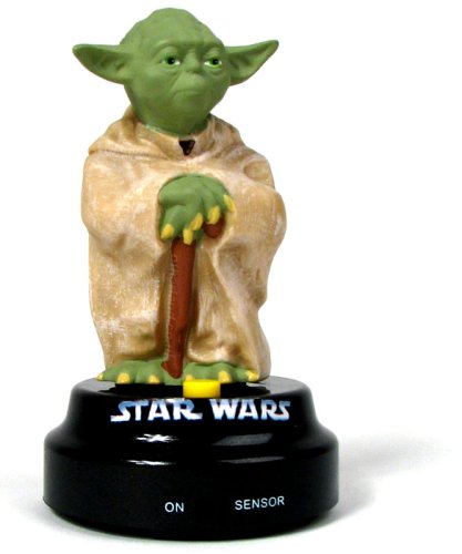 Very collectible! Yoda speaks with excellent speaker quality. He says 10 phrases from the movie. Activates from the notion of your car, or at the press of a button. Colors are lighter than photographed, more lifelike in person.