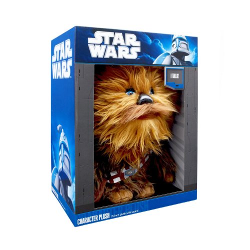 Adorable, huggable Chewie! Hear this Wookiee growl! A furry copilot of your very own! This 15-inch tall Talking Chewbacca Plush from Star Wars is an incredibly cute and life like recreation of absolutely everyone's favorite Wookiee. He's the perfect gift for any fan who's ever wanted a furry copilot of their own! Why not take a load off and cuddle up with this wonderful soft-plush Chewbacca while the Galactic Wars rage on between the Empire and the Rebel forces? With a press of a button, hear Chewie's trademark Wookiee growl!