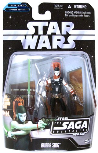 Star Wars - Saga Collection Wal-Mart Exclusives Aurra Sing (Bespin) NIP Action Figure from the 2006 toy series. Weapon: Lightsaber Trained By: The Dark Woman Unusual Accessory: Skull-Implanted Sensor Once a promising if headstrong Padawan, Sing now trades in dark professions: pirate, assassin, and bounty hunter. She specializes in hunting down Jedi under the mistaken belief that they abandoned and betrayed her, and she brandishes the lightsabers of her victims as prized trophies. During the Clone Wars, her quest for vengeance once took her to Bespin, where she met a young Boba Fett.