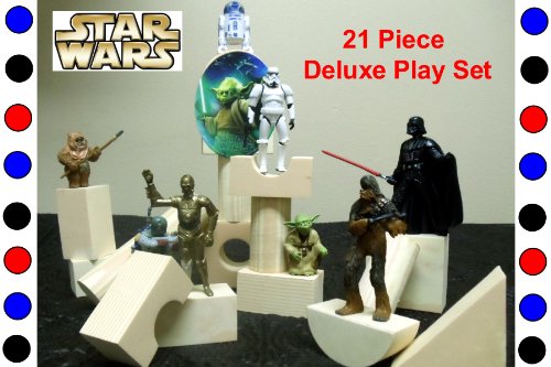 Star Wars Deluxe 21 Piece Play Set Including 8 Figures Featuring Boba Fett, Darth Vader, Yoda, Stormtrooper, R2-D2, Chewbacca, C-3PO and Wicket the Ewok, 10 Battle Zone Playset Pieces That Can Be Configured Into Hundreds of Different Designs, Darth Vader Mug, and More Than 100 Die Cut Stickers that Can Be Applied to Battle Zone Pieces or Anything Else to Bring Star Wars to Life Review