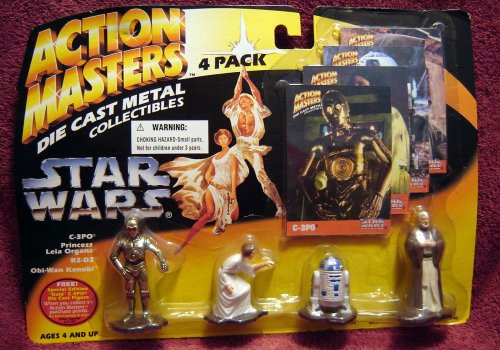 Action Masters Star Wars 4 Pack includes R2-D2 C-3P0 Princess Leia and Obi-wan Kenobi. Die Cast metal - very detailed.