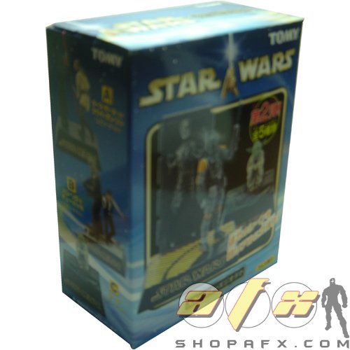 Japanese diorama snap kit for Star Wars. Each box is a mystery. Possible dioramas include Darth Maul vs. Qui-Gon Jinn, Han Solo and Chewbacca, Yoda in Dagobah, Boba Fett and Han Solo in Carbonite, or Luke Skywalker at Bespin.